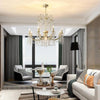 The Chandelier has a brushed gold finish and staggered clear glass rods. Add this chandelier above your dining table or coffee table to give your room a unique and luxurious feel.