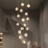 Inspired by the graceful elegance of water droplets, this chandelier is a masterpiece of light and artistry. Inside each crystal-clear drop, delicate flecks of gold powder shimmer like captured sunlight, creating an enchanting interplay of brilliance and depth. The integrated LED breathes life into the design, casting a radiant glow through the pristine crystal lampshades, evoking a serene and dreamlike ambiance.